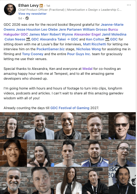 We also joined Ethan Levy at Louie’s Bar for a series of GDC interviews alongside a group of top operators, founders, and creatives across the gaming ecosystem.
