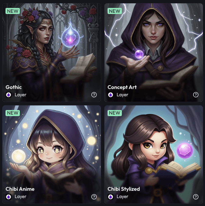 Teach Layer your unique art style to generate on-brand visuals without compromising on quality or authorship.